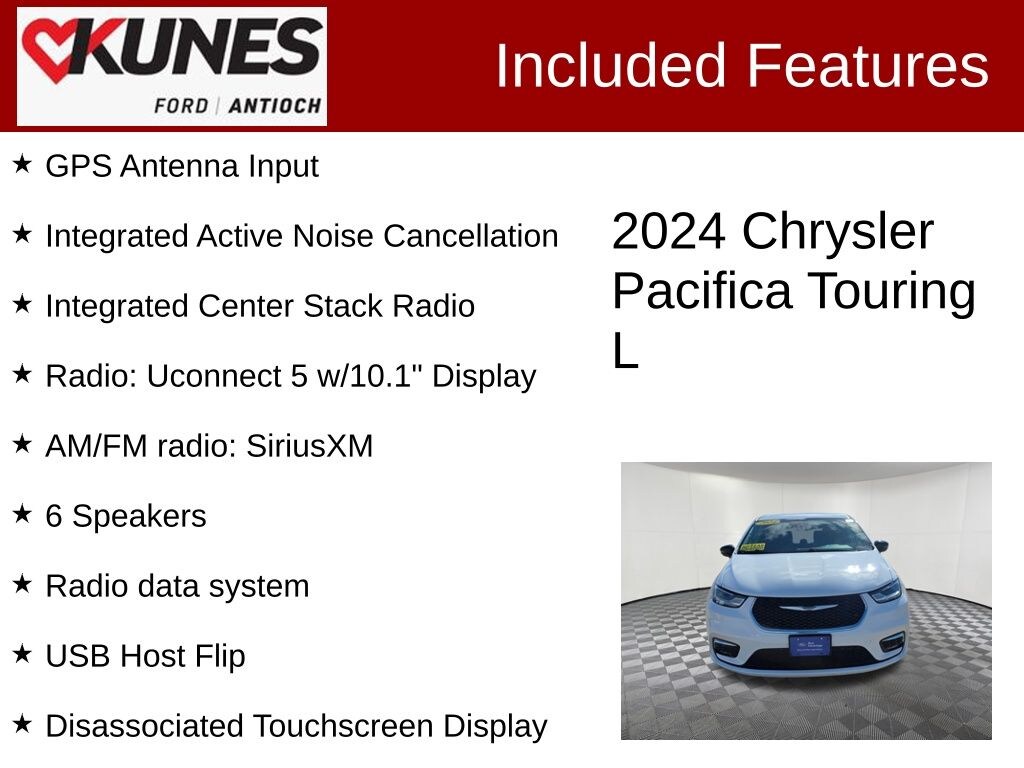 2024 Chrysler Pacifica Touring L 3.6L V6 24V VVT 9-Speed 948TE Automatic FWD Clean CARFAX. CARFAX One-Owner. 19/28 City/Highway MPG