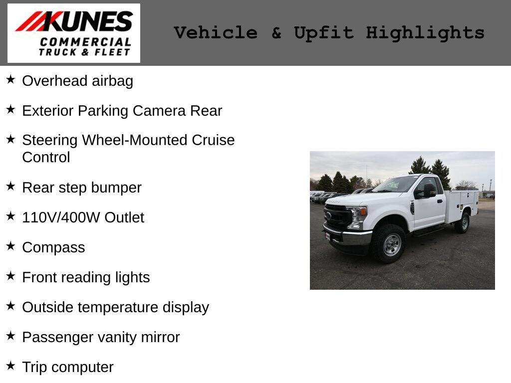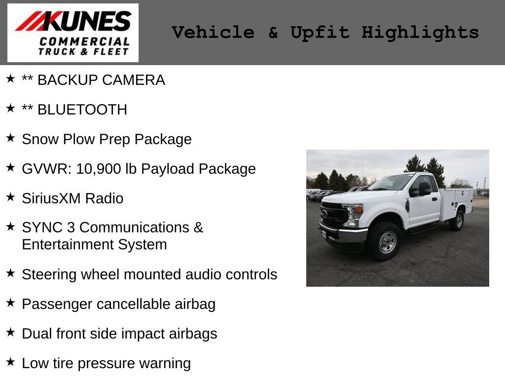 ** BACKUP CAMERA, ** BLUETOOTH, 4WD, 110V/400W Outlet, Compass, Dual front side impact airbags, Exterior Parking Camera Rear, Front Center Armrest w/Storage, Front reading lights, GVWR: 10,900 lb Payload Package, Low tire pressure warning, Outside temperature display, Overhead airbag, Passenger cancellable airbag, Passenger vanity mirror, Rear step bumper, SiriusXM Radio, Snow Plow Prep Package, Steering wheel mounted audio controls, Steering Wheel-Mounted Cruise Control, SYNC 3 Communications & Entertainment System, Tinted Rear Privacy Glass, Trip computer, Wheels: 18" Sparkle Silver Painted Cast Aluminum.