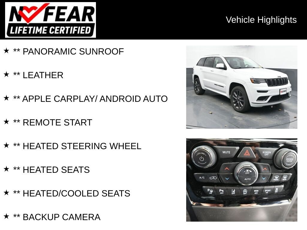 ** PANORAMIC SUNROOF, ** LEATHER, ** APPLE CARPLAY/ ANDROID AUTO, ** REMOTE START, ** HEATED STEERING WHEEL, ** HEATED SEATS, ** HEATED/COOLED SEATS, ** BACKUP CAMERA, ** NAVIGATION, ** REAR PARK ASSIST, ** BLUETOOTH, ** ADAPTIVE CRUISE, 4WD, 10 Speakers, Active Noise Control System, Anodized/Light Black Chrome Interior Accents, Anti-whiplash front head restraints, Audio memory, Auto-leveling suspension, Black Wood Instrument Panel & Door Spears, Body Color Door Handles, Body Color Exterior Mirrors, Body Color Fascias w/Granite Accents, Body Color Sill Extension, Bright Pedals, Bumpers: body-color, Dark Day Light Opening Moldings, Dark Headlamp Bezel Finish, Dark Lens Taillamps, Delay-off headlights, Dual Bright Exhaust Tips, Dual Dark Chrome Exhaust Tip, Emergency communication system: SiriusXM Guardian, Four wheel independent suspension, Front anti-roll bar, Genuine wood inserts, Granite Crystal Exterior Accents, Granite Crystal Exterior Badging, Granite Crystal/Black Grille, Leather Shift Knob, Occupant sensing airbag, Overhead airbag, Overhead console, Power moonroof: Dual-Pane Panoramic, Premium Accent Claddings, Premium LED Fog Lamps, Radio data system, Radio: Uconnect 4C Nav w/8.4" Display, Rear anti-roll bar, Rear seat center armrest, Rear window defroster, Rear window wiper, Roof rack: rails only, Speed-sensing steering, Speed-Sensitive Wipers, Split folding rear seat, Variably intermittent wipers, Voltmeter, Wheels: 20" x 8.0" Granite Crystal Aluminum, Wheels: 20" x 8.0" Polished/Tech Gray Aluminum.