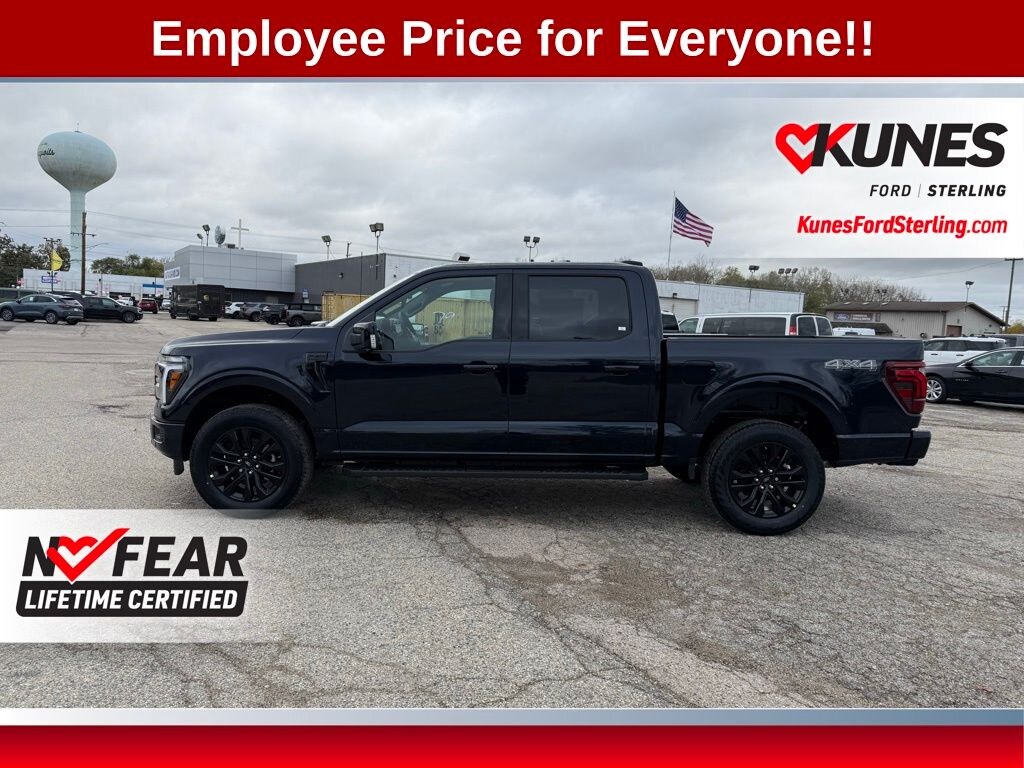 F150 4x4 2025 Ford F-150 Lariat SuperCrew 4WD, 3.31 Axle Ratio, 4-Wheel Disc Brakes, 8 Speakers, ABS brakes, ActiveX Trimmed Bucket Seats, Adjustable pedals, Air Conditioning, Alloy wheels, AM/FM radio: SiriusXM with 360L, Auto High-beam Headlights, Auto-dimming door mirrors, Auto-dimming Rear-View mirror, Automatic temperature control, Brake assist, Bumpers: chrome, Chrome wheels, Compass, Delay-off headlights, Driver door bin, Driver vanity mirror, Dual front impact airbags, Dual front side impact airbags, Electronic Stability Control, Emergency communication system: SYNC 4 911 Assist, Front anti-roll bar, Front Bucket Seats, Front Center Armrest, Front dual zone A/C, Front fog lights, Front reading lights, Front wheel independent suspension, Fully automatic headlights, Garage door transmitter, Heated door mirrors, Heated front seats, Heated steering wheel, Illuminated entry, Low tire pressure warning, Memory seat, Navigation system: Connected Navigation, Occupant sensing airbag, Outside temperature display, Overhead airbag, Overhead console, Panic alarm, Passenger door bin, Passenger vanity mirror, Pedal memory, Power door mirrors, Power driver seat, Power passenger seat, Power steering, Power windows, Radio data system, Radio: B&O Sound System by Bang & Olufsen, Rain sensing wipers, Rear reading lights, Rear seat center armrest, Rear step bumper, Rear window defroster, Remote keyless entry, Security system, Speed control, Split folding rear seat, Steering wheel mounted audio controls, SYNC 4 w/Enhanced Voice Recognition, Tachometer, Telescoping steering wheel, Tilt steering wheel, Traction control, Trip computer, Turn signal indicator mirrors, Variably intermittent wipers, Ventilated front seats, Voltmeter, Wheels: 18" Chrome-Like PVD, 4WD.