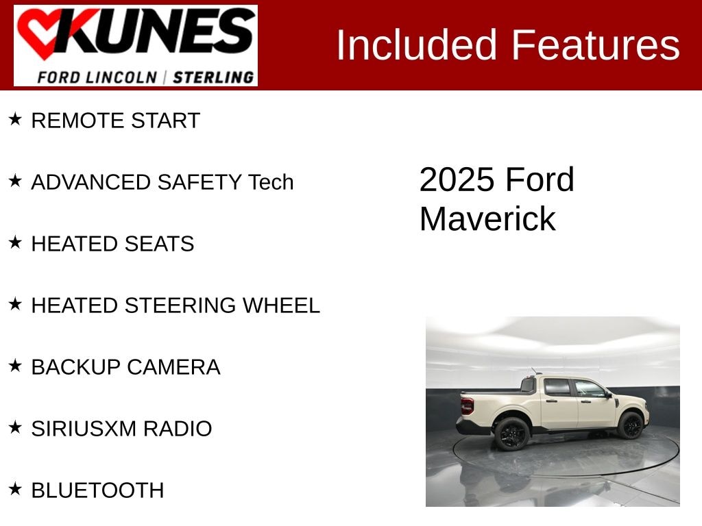 The 2025 Maverick can handle any task at work or play. Also included with every new vehicle: LIFETIME "NO FEAR" WARRANTY and AT HOME COURTESY DELIVERY! Call us for full details! We pride ourselves on honesty and integrity, but please note that mistakes or misprints due to human error are possible. Find out why our dealerships have won DealerRater.com DEALER OF THE YEAR a whopping 10 TIMES! Call, email, or live chat with one of our friendly sales professionals now to schedule your test drive! Prices shown do not include taxes, license, and title fees and a $377.63 documentary service fee, and $399 Security Fee. Price includes: $1000 - Bonus Customer Cash. Exp. 04/30/2026 $1000 - Mega Auto Show Bonus Cash. Exp. 04/30/2026 $1000 - Retail Customer Cash. Exp. 04/30/2026 Price Includes: $2000 - Trade in assistance. Exp. 12/31/2026 Trade In Allowance. Trade must be 2020 or newer and have less than 65k miles