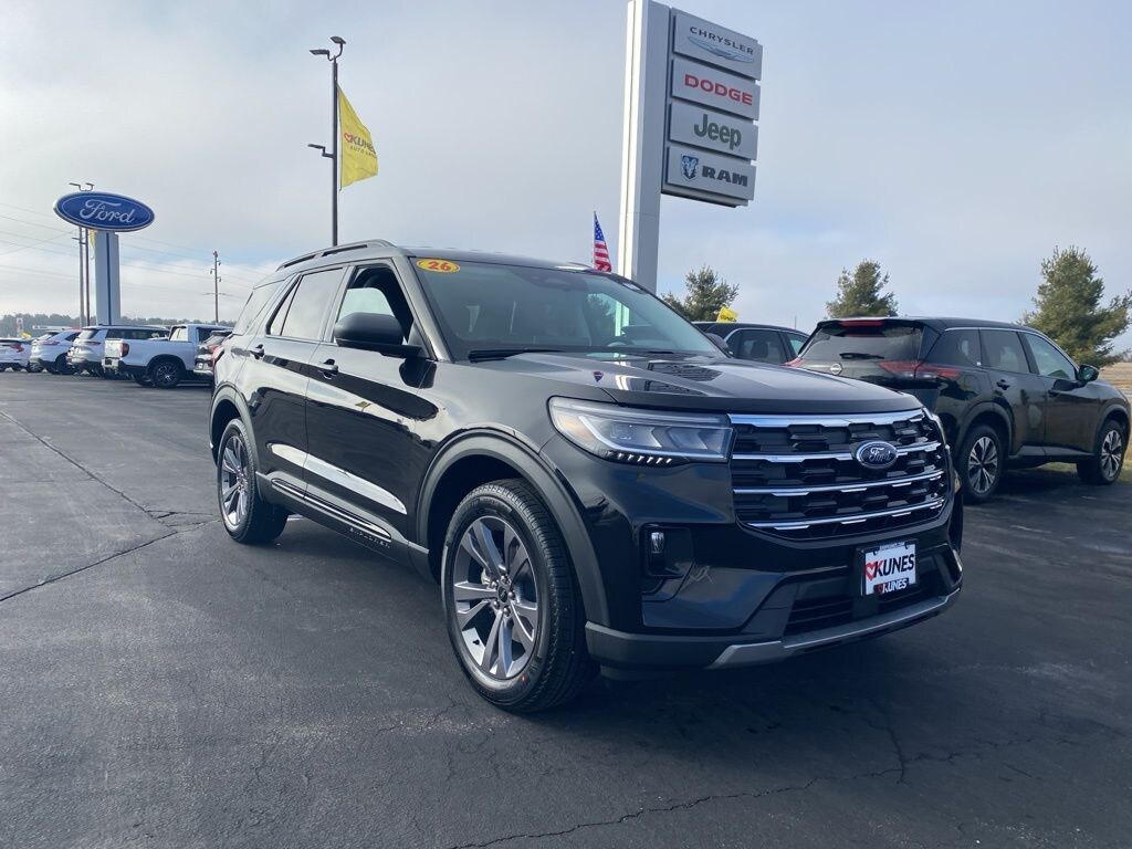 Features include:, Advanced Safety Features, Apple CarPlay/Android Auto, Bluetooth, Rear View Camera, Rear Park Assist, Heated Seats, 2nd Row Captain Chairs/Buckets, 3rd Row Seating, Keyless Entry, Keyless Ignition, Remote Start, Sirius/XM, Steering Wheel Controls, Explorer Active, 4D Sport Utility, 2.3L EcoBoost I-4, 10-Speed Automatic, 4WD, Agate Black Metallic, Space Gray w/Heated ActiveX Seating Material Captain's Chairs, Active Comfort Package, Equipment Group 200A Standard Package, Navigation System. 2026 Ford Explorer Active Agate Black Metallic 2.3L EcoBoost I-4 20/27 City/Highway MPG The 2026 Explorer can carry all the passengers and cargo you need in style and comfort. Also included with every new vehicle: LIFETIME "NO FEAR" WARRANTY and AT HOME COURTESY DELIVERY! Call us for full details! We pride ourselves on honesty and integrity, but please note that mistakes or misprints due to human error are possible. Find out why our dealerships have won DealerRater.com DEALER OF THE YEAR a whopping 10 TIMES! Call, email, or live chat with one of our friendly sales professionals now to schedule your test drive! Prices shown do not include taxes, license, and title fees and a $377.63 documentary service fee. Customer must qualify for advertised rebates. Not responsible for human error. Price includes: $2500 - Retail Customer Cash. Exp. 03/31/2026
