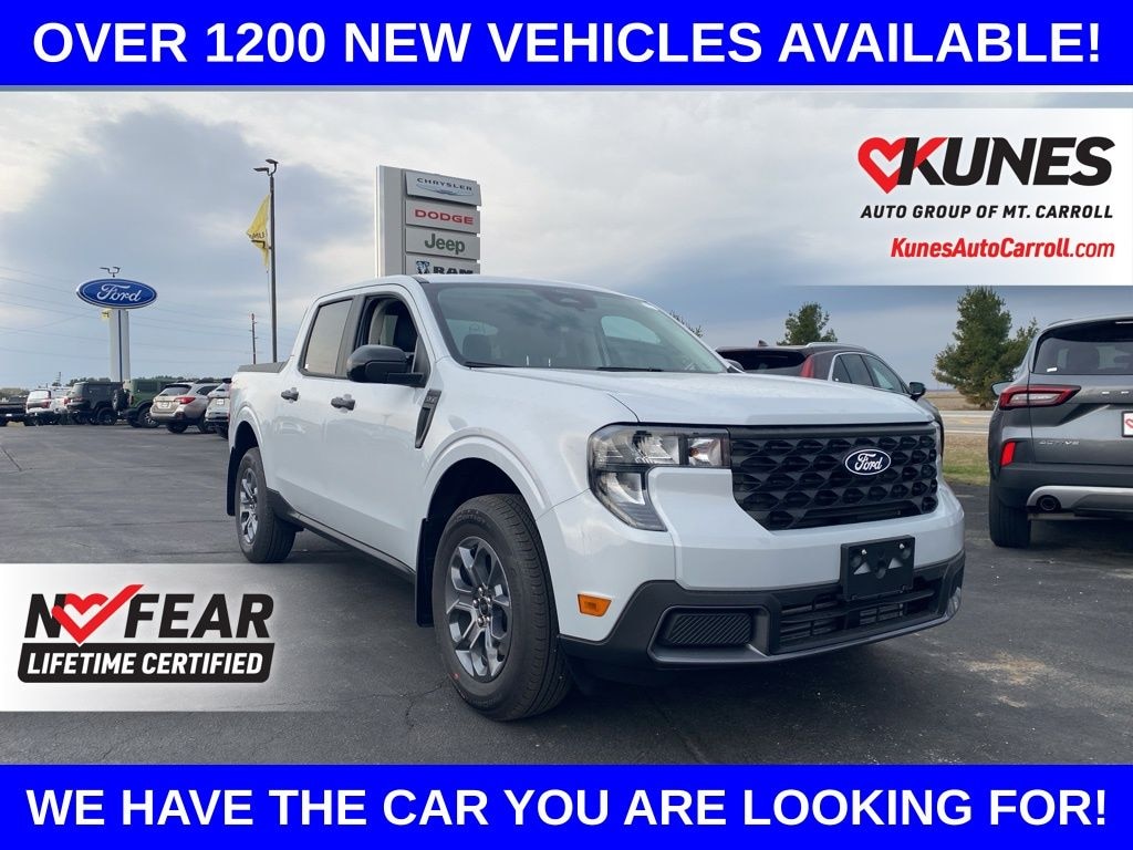 Features include:, Advanced Safety Features, Bluetooth, Rear View Camera, Heated Seats, Keyless Ignition, Remote Start, Sirius/XM, Tow Package, Maverick XLT, 4D Crew Cab, EcoBoost 2.0L I4 GTDi DOHC Turbocharged VCT, 8-Speed Automatic, AWD, Space White Metallic, Navy Pier/Aspen Gray Cloth, 4K Tow Package, Equipment Group 302A, Ford Co-Pilot360, Ford Connectivity Package (1-Year Included), Internet access capable: 5G Modem - Ford Connectivity Package, XLT Luxury Package. 2026 Ford Maverick XLT Space White Metallic EcoBoost 2.0L I4 GTDi DOHC Turbocharged VCT 22/30 City/Highway MPG The 2026 Maverick gives you all the passenger and storage space you need along with the economy you need. Also included with every new vehicle: LIFETIME "NO FEAR" WARRANTY and AT HOME COURTESY DELIVERY! Call us for full details! We pride ourselves on honesty and integrity, but please note that mistakes or misprints due to human error are possible. Find out why our dealerships have won DealerRater.com DEALER OF THE YEAR a whopping 10 TIMES! Call, email, or live chat with one of our friendly sales professionals now to schedule your test drive! Prices shown do not include taxes, license, and title fees and a $377.63 documentary service fee. Customer must qualify for advertised rebates. Not responsible for human error. Price includes: $500 - Retail Customer Cash. Exp. 03/31/2026