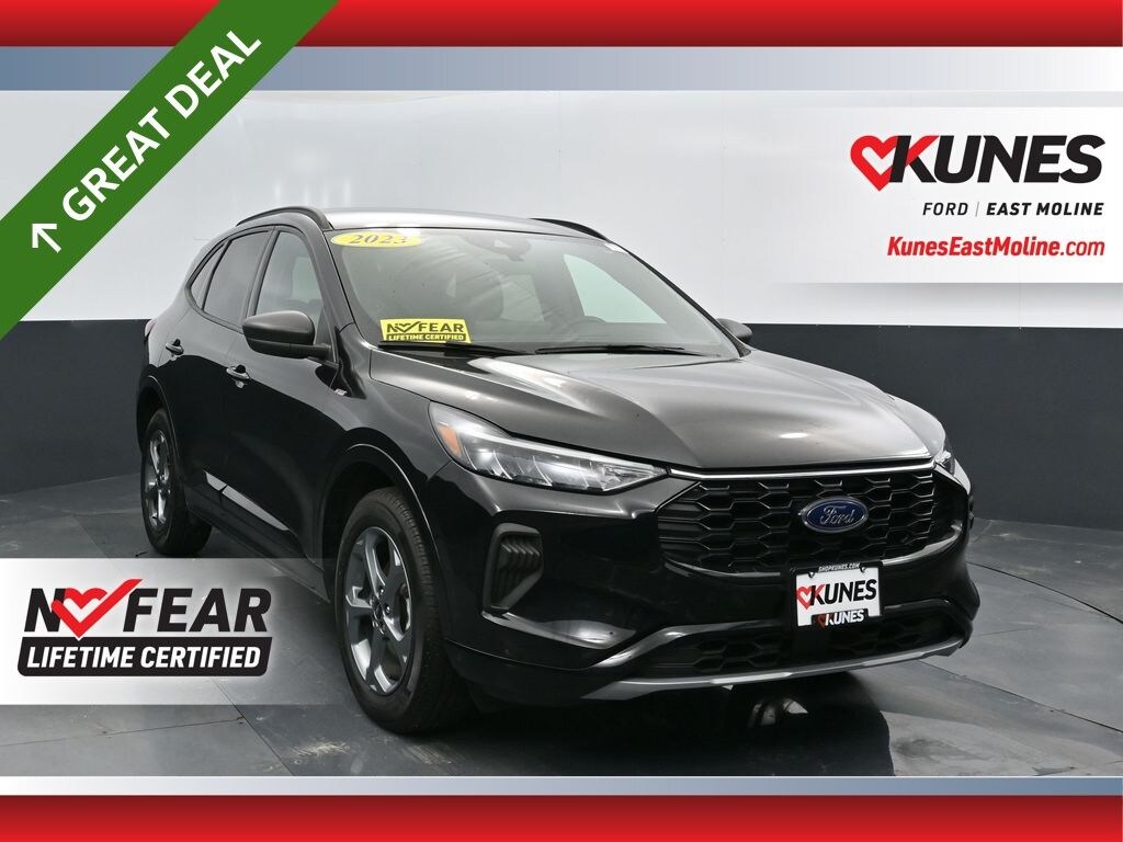 2023 Ford Escape ST-Line Agate Black Metallic 1.5L EcoBoost CARFAX One-Owner. NAVIGATION, ADAPTIVE CRUISE, ADVANCED SAFETY TECH, HEATED SEATS, REMOTE START, BACKUP CAMERA, SIRUS/XM RADIO, REAR PARK ASSIST, ** BACK UP CAMERA, AWD, SYNC 4 w/Enhanced Voice Recognition. Odometer is 9979 miles below market average! 26/32 City/Highway MPG