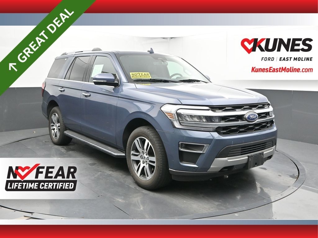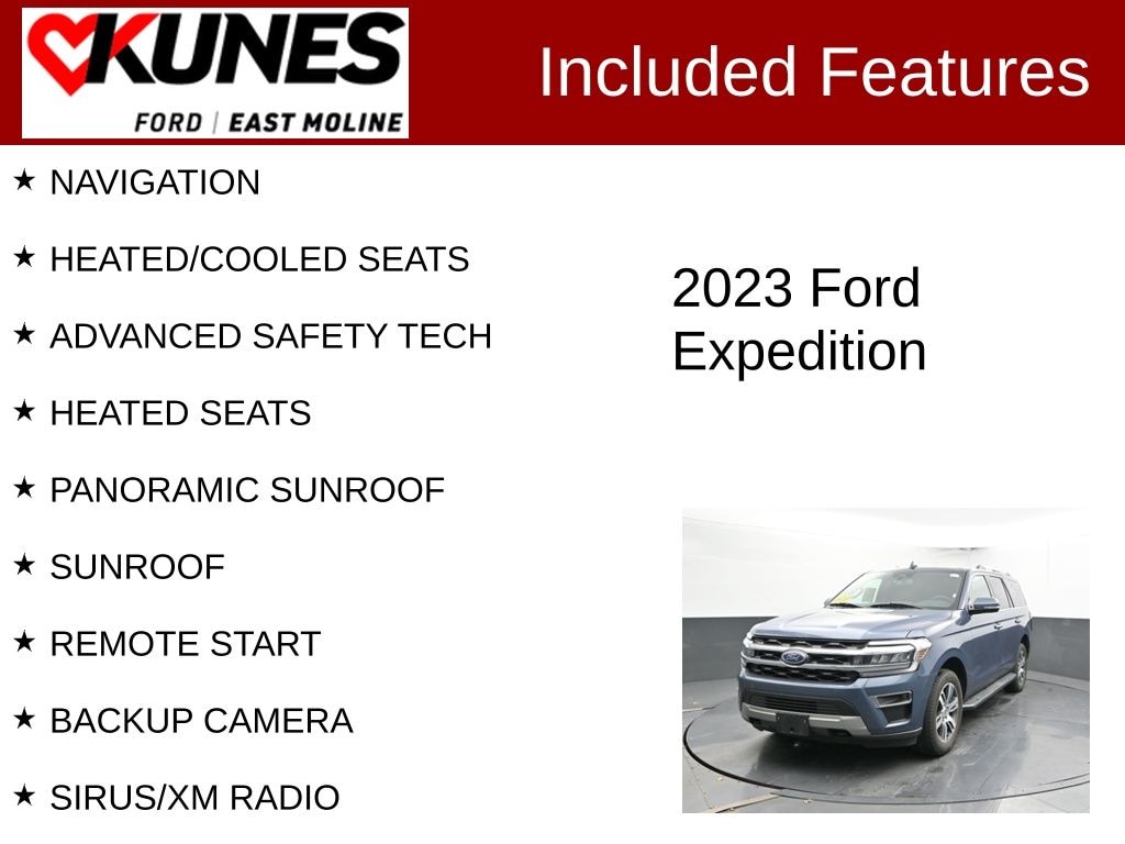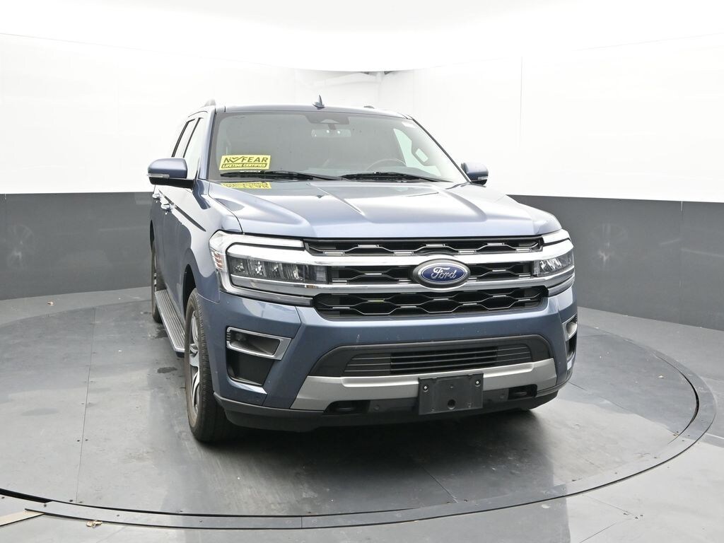 2023 Ford Expedition Limited Blue Metallic EcoBoost 3.5L V6 GTDi DOHC 24V Twin Turbocharged CARFAX One-Owner. NAVIGATION, HEATED/COOLED SEATS, ADVANCED SAFETY TECH, HEATED SEATS, PANORAMIC SUNROOF, SUNROOF, REMOTE START, BACKUP CAMERA, SIRUS/XM RADIO, BLUETOOTH, ** BACK UP CAMERA, ** BLUETOOTH, 4WD, 12 Speakers, 3.31 Axle Ratio, Auto-dimming Rear-View mirror, Compass, Emergency communication system: SYNC 4 911 Assist, Four wheel independent suspension, Front Center Armrest, Front reading lights, Garage door transmitter, Illuminated entry, Navigation system: Connected Navigation, Outside temperature display, Overhead console, Panoramic Vista Roof, Power Liftgate, Power moonroof, Radio data system, Radio: B&O Sound System by Bang & Olufsen, Rear reading lights, Rear window defroster, Reclining 3rd row seat, Speed-sensing steering, Speed-Sensitive Wipers, Split folding rear seat, Spoiler, SYNC 4 w/Enhanced Voice Recognition, Tachometer, Telescoping steering wheel, Tilt steering wheel, Trip computer, Turn signal indicator mirrors, Variably intermittent wipers, Voltmeter.