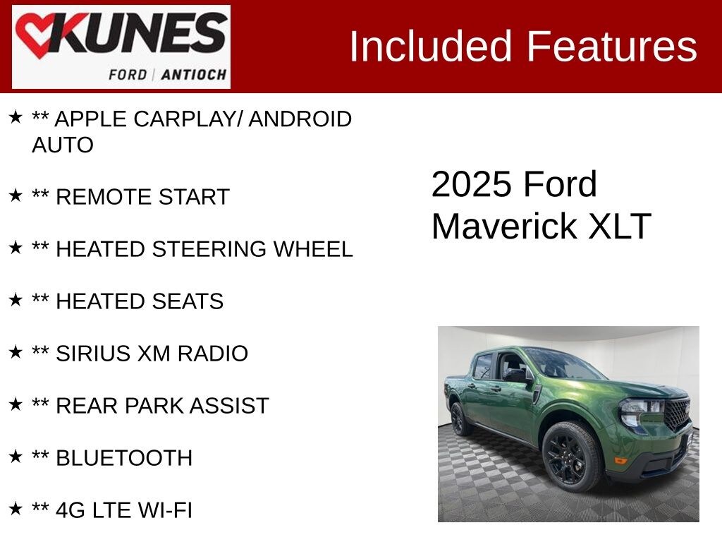 2025 Ford Maverick XLT Green AWD EcoBoost 2.0L I4 GTDi DOHC Turbocharged VCT