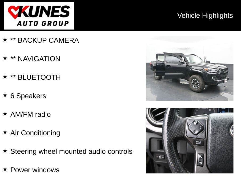 ** BACKUP CAMERA, ** NAVIGATION, ** BLUETOOTH, 4WD, 6 Speakers, ABS brakes, Air Conditioning, AM/FM radio, Brake assist, Electronic Stability Control, Exterior Parking Camera Rear, Illuminated entry, Low tire pressure warning, Power windows, Speed-sensing steering, Steering wheel mounted audio controls, Traction control.